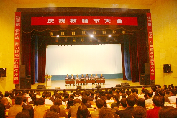 在大会上,邓福庆书记以一位有着30多年教龄的教师身份谈了为师体会,与老师们共勉:第一,作为人民教师,要志存高远、爱国敬业,既要忠诚于人民的教育事业,更要坚定为祖国强盛培养人才的信心,自觉学习和实践科学发展观,为实施“高教强省”战略和把我校建设成为高水平大学做出应有的贡献。第二,作为人民教师,要严于律己,为人师表,既重言教,更重身教,守护好大学这一美好的精神家园。第三,作为人民教师,要严谨笃学,与时俱进,成为热爱学习、学会学习、终身学习的楷模。