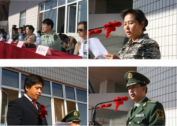 军训团副团长、我校副校长郑喜群宣布了军训团组成名单和军训团编制序列。承担军训任务的中国人民武装警察部队齐齐哈尔市支队政治部副主任袁国锋中校代表教官讲话;我校新生外语学院王一博代表参训学生发言。