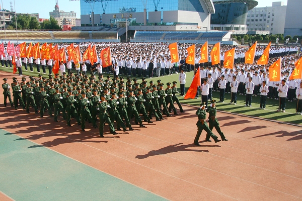 省属重点的环湖大学热情拥抱八方学子,嫩江文明的育人高地精心培育时代英才。2008年9月11日上午8:30,我校2008级新生军训动员大会在西区体育场隆重举行。