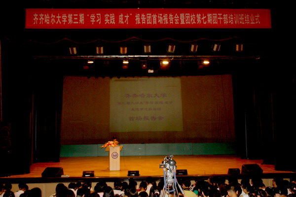 本期报告团由校团委举办,旨在广泛宣传我校团员青年中涌现出的先进人物及典型事迹,激励、引导广大同学刻苦学习、锐意进取、投身科技、实践成才,全面推进校园文化建设工程,深入贯彻落实胡锦涛总书记在同团中央新一届领导班子和团十六大部分代表座谈时讲话的精神,动员全校团员青年为学校创建国家级文明单位做贡献。