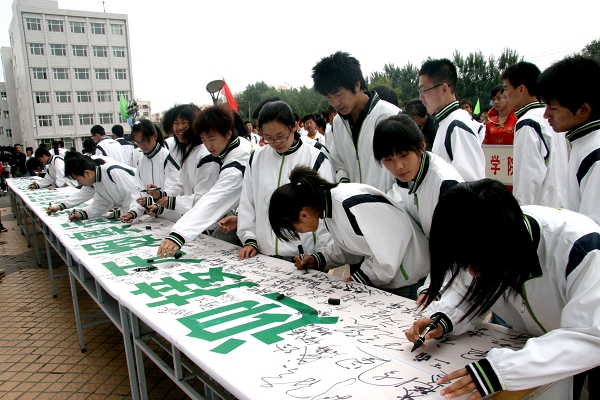 随后,无烟青春好年华签名活动正式开始。光临本次活动的领导、嘉宾首先签名,校团委老师及各学院团委书记、辅导员和1300余名学生进行了签名。