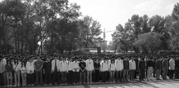 根据国务院公告的要求,19日14时28分起,全校万名师生集体默哀3分钟。
