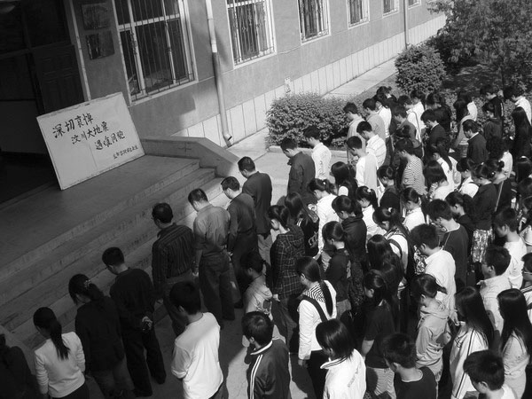 举校共殇,师生同哀,我们以默哀来表达对汶川大地震遇难同胞的深切缅怀和追思。