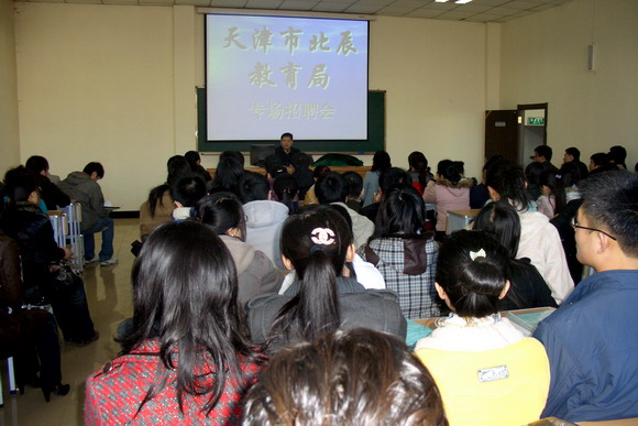 天津市北辰区教育局此次来校招聘,重点选聘中文、数学、外语等学科人才。我校相关专业的毕业生积极报名,踊跃竞聘,通过素质考核、答疑、面试、试讲等环节,经双向选择,北辰区教育局当场与7名优秀毕业生签订了就业协议。