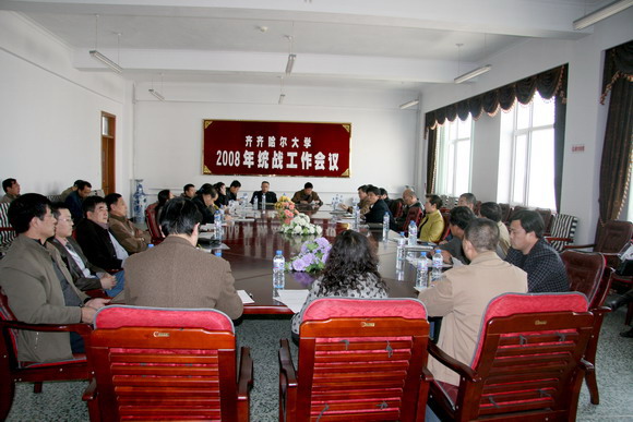 会上,校党委副书记王凤琴向与会人员通报了学校党委2008年工作要点,并就今年的统战工作讲了话。校党委统战部部长李敏义简要总结了我校2007年统战工作,对2008年统战工作做了安排和部署。校党委统战部副部长田志峰传达了国家、省、市统战部长会议精神;传达了省委统战部、省委高校工委《关于加强和改进高校统战工作的意见》(黑统发[2007]73号)文件精神;宣读了关于全校统战系统2007年建言献策先进个人的表彰决定。