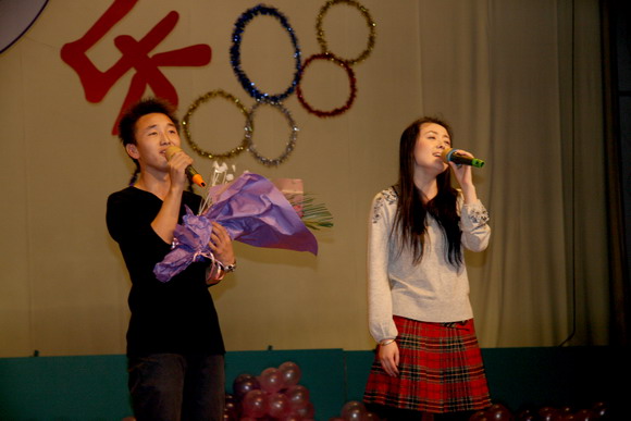 校研究会主席王登宇同学首先登场献歌,并代表校研究生会向全体研究生及广大师生致以新年的真诚问候。