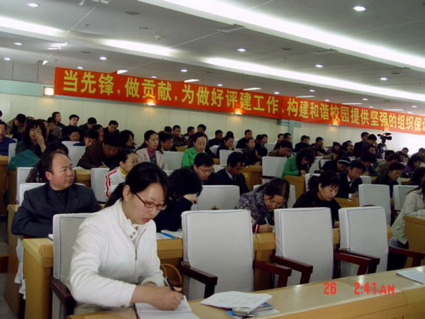 学校党委牢固树立“围绕中心抓党建、抓好党建促中心”的理念,高度重视主题教育活动,将其作为创建党建工作特色体系的重要措施。特别是2007年,学校接受教育部本科教学水平评估。充分发挥党组织和党员的作用,推动教学评建工作。党委在以往开展活动的基础上,根据当年的工作重点,在全校党组织和党员中开展以“当先锋、做贡献”为主题的教育活动,制定了实施意见,明确了活动的指导思想、原则、内容,要求通过主题教育活动的深入开展促进评建工作,通过评建工作情况来检验主题教育活动的实际效果。