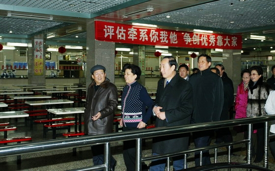 陈至立委员很关心大学生的生活情况,她专程到我校的学生食堂进行了考察。唱江华校长汇报了我校食堂的运营及管理工作概况,以及应对物价上涨所采取的措施。陈至立委员关切地询问了对经济困难学生的补助情况,察看了主、副食的品种和价格,对我校学生食堂采取的管理举措及充满人文关怀的服务工作给予了肯定。