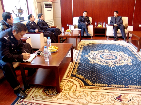 王海军副局长对我校一年来对市局工作的支持与配合表示感谢,他向我校与会人员介绍了市局一年来的工作情况,并以此征求我校对公安工作的意见和建议。副校长张忠恒对市局领导亲自来到我校征求工作意见、指导工作表示热烈欢迎,对市公安局一直以来给予我校的大力支持表示感谢。张忠恒副校长在讲话中说,齐市公安局良好的警容警风在我校师生中广受好评,市局干警在维护社会稳定、确保一方平安方面做了大量工作,为我校的快速发展提供了有力保障,两个单位在开展警学合作方面有着优良的传统,积累了宝贵的经验。希望以后双方加强合作,共同为地方的发展建设做贡献。张忠恒副校长和王海军副局长还深入探讨了校园安全、交通安全、生产安全工作等方面的问题。