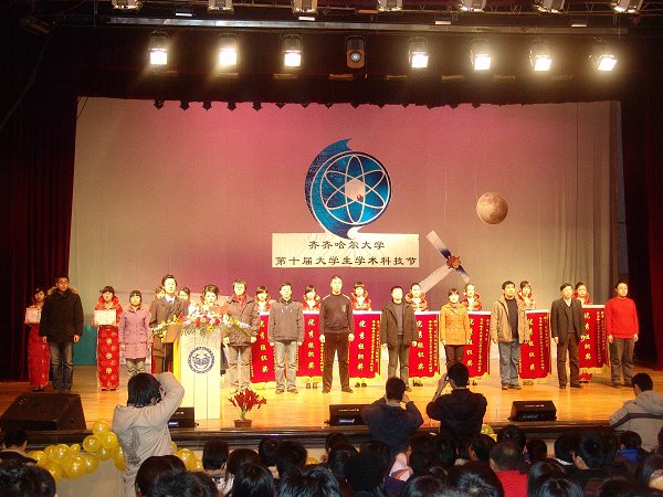 闭幕式上,副校长姜守训宣读了《tyc1286太阳集团第十届大学生学术科技节各项竞赛活动获奖集体和个人名单》和《2007年度在全国、全省大学生学术竞赛活动中获奖集体和个人名单》,对在本届科技节中表现突出的科技活动先进集体和个人进行了命名表彰。我校王晓宇等40余名学生个人、近120个学生团队分获“求知•探索•创新”大学生科技论坛、“科技之星”大学生知识与创意能力大赛、大学生创业计划大赛等活动的各类奖项;通信与电子工程学院、经济管理学院、理学院、计算机与控制工程学院、生命科学与工程学院、应用技术学院、化学与化学工程学院、人文学院获得本届科技节“优秀组织奖”荣誉称号。