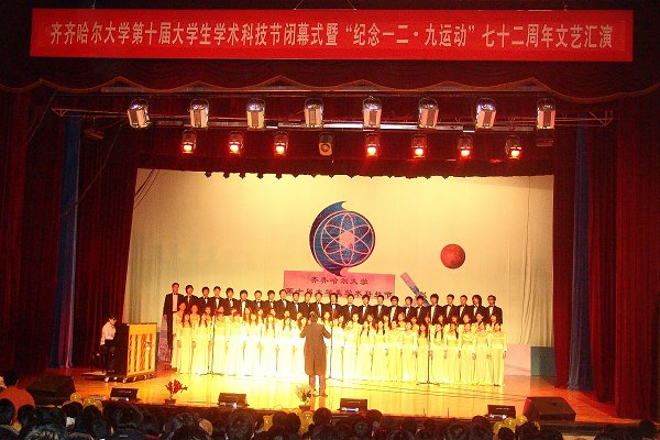 12月7日下午14时30分,我校第十届大学生科技节闭幕式暨“纪念一二•九运动”七十二周年文艺演出在中区俱乐部隆重举行。校领导史铁成、王凤琴、曲伟建、姜守训等出席闭幕式现场。第十届大学生学术科技节组委会成员,各有关部门、有关单位负责人,以及各学院团委书记、辅导员老师和全校一千五百余名学生代表一起参加了闭幕式并观看了文艺演出。