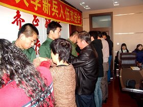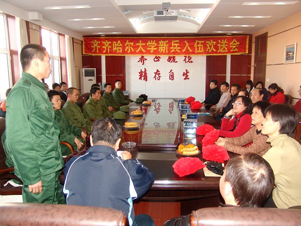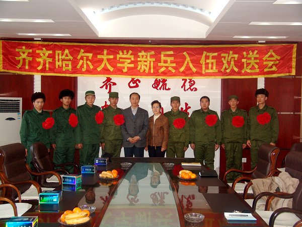 校党委副书记王凤琴在讲话中指出:部队是一个锻炼人才的"大熔炉"。军人是一种特殊的职业,选择这种职业就意味着与艰苦和奉献密切相连。军营不但能磨练人的意志和品格,而且能培养青年人的集体主义,吃苦耐劳,无私奉献的精神。她希望我校八名新应征入伍的同学树立远大理想和信念,坚定正确的政治方向,勤于学习,取长补短,积极要求进步,磨练意志品质,不畏艰苦,发愤图强,到部队后,认真贯彻执行好部队各种条例、条令,向部队首长及战友们虚心学习,更要有主动向逆境挑战的积极思想和行动,努力使自己成为一名合格的战士、优秀的军人,为母校争光。