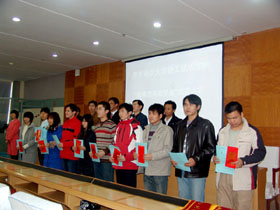 颁奖大会上,轻纺学院院长赵欣、科莱恩化工(中国)有限公司高级市场经理马军龙先后发表了讲话。赵欣在讲话中对马军龙先生的到来表示欢迎,对科莱恩公司的助学善举表示感谢,他勉励获奖同学再接再厉,用优异的学习成绩回报社会关怀。赵欣院长在讲话中还回顾了我校轻纺学院和瑞士科莱恩公司开展合作的情况。马军龙经理在讲话中对获得本年度科莱恩奖学金的同学表示祝贺,并表达了希望同学们扎实地学习专业知识、健康成长、努力成才的良好愿望。