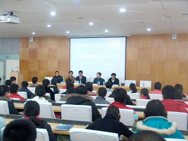 12月20日下午15时,我校轻工纺织学院“科莱恩奖助学金”颁奖大会在西主学术报告厅隆重举行。瑞士科莱恩化工(中国)有限公司高级市场经理马军龙先生,轻纺学院党委书记张晓慧、院长赵欣、副院长刘士山、乔成立出席颁奖大会,轻纺学院一百余名师生代表参加会议。会议由轻纺学院副院长刘士山主持。