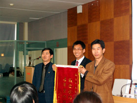 会上,我校轻纺学院党委书记张晓慧、院长赵欣代表我校轻纺学院向马军龙先生赠送了锦旗。获得科莱恩奖助学金的学生代表做了发言,并代表受助学生向马军龙经理转交了同学们的集体感谢信。