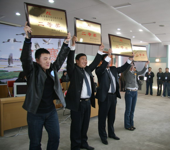 黑龙江省教育厅党组成员、助理巡视员尹晓岚,省教育厅财审处副处长齐天华和我校校长唱江华、党委副书记史铁成、副校长曲伟建,齐齐哈尔市教育局党委委员、常务副局长于百河,黑龙江省教育学院总会计师兼财务处长孙慧颖、大庆石油学院总会计师兼财务处长陈德海等分别为获奖单位和个人颁发了奖牌。