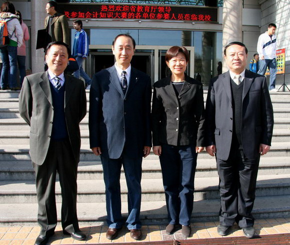 黑龙江省教育厅党组成员、助理巡视员尹晓岚,我校校长唱江华、党委副书记史铁成、副校长曲伟建与省教育厅财审处副处长齐天华,市教育局党委委员、常务副局长于百河,市教育局党委委员、副调研员王振龙等出席了会计知识大赛决赛现场。