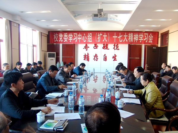 11月2日下午,校党委理论学习中心组在机关办公楼504会议室召开十七大精神专题学习(扩大)会议。唱江华校长主持了会议。