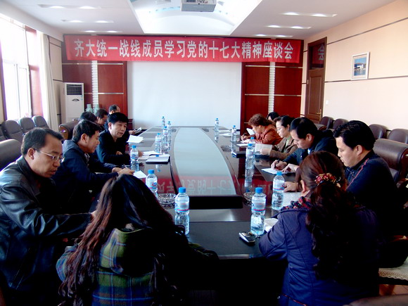11月8日下午,我校统一战线成员学习党的十七大精神座谈会在行政办公楼504会议室召开,校党委副书记王凤琴、校党委统战部部长李敏义、校各民主党派、侨联和政协活动组的负责人、无党派代表人士参加了会议。校党委统战部副部长田志峰主持了会议。