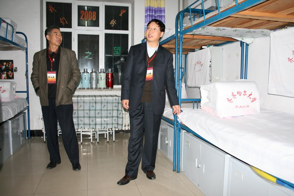 9月26日19时20分,评估专家王立新教授、邢永昌教授考察我校学生宿舍及自习情况。两位专家先后考察了13号及15号学生宿舍楼,在学生寝室与学生进行了交流。