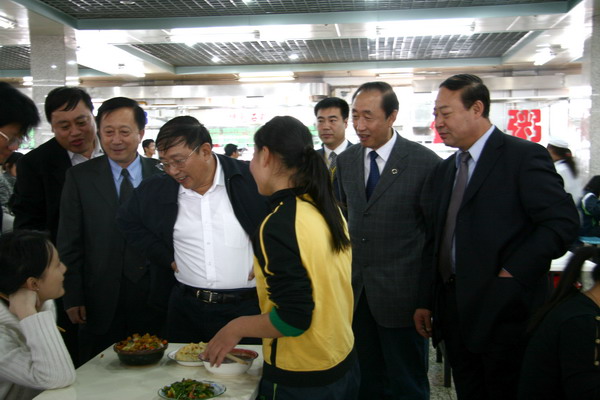 11:45,恰值学生午餐时间。程幼东副省长一行来到了中区三楼的学生餐厅,与师生一道共进午餐,受到了师生们的热烈欢迎。