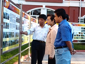 本次成果展共用16块展板图文并茂地介绍了我校从04年以来在师资队伍建设、教学条件改善、专业设置建设、教学效果以及科研成果等方面所取得的丰硕成果。展出内容翔实,材料完备,涉及到我校本科教学工作的方方面面,充分展示了我校在迎评促建工作中,认真贯彻评建20字方针,切实落实评估指标体系,扎扎实实以高标准严要求开展本科教育教学工作给学校所带来的巨大变化。