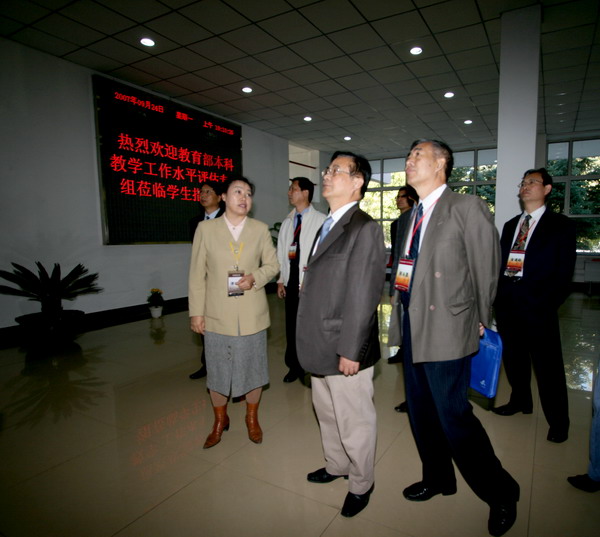 9月24日上午,教育部本科教学工作水平评估专家一行11人在省、市、校领导的陪同下,集体考察了我校教学基础设施情况,参观了“环湖大学”校园。