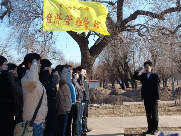 4月5日,清明节的当日早晨。我校经济管理学院、人文学院、应用技术学院、齐大青年报等单位青年学生在党团组织的带领下,有秩序地到和平广场和沙涛革命烈士纪念碑祭奠扫墓,并分别举行了庄严的入党宣誓仪式。