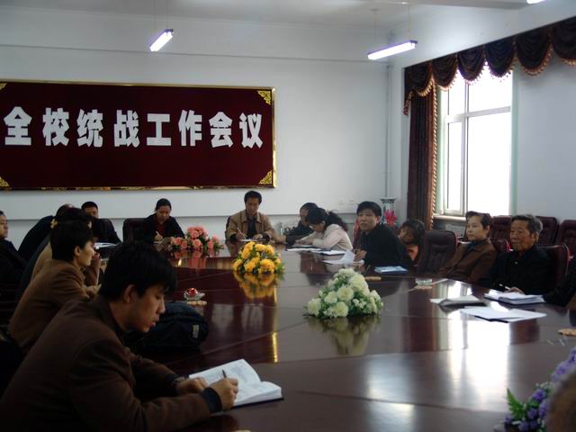 会议首先由校党委统战部副部长田志峰传达了省市统战工作会议精神,学习了中央统战部、教育部下发的《关于加强高校统战工作的意见》;校党委统战部部长李敏义重点总结了我校2004年统战工作,并结合我校实际,就贯彻落实上级文件精神,做好2005年度统战工作进行了部署和安排。