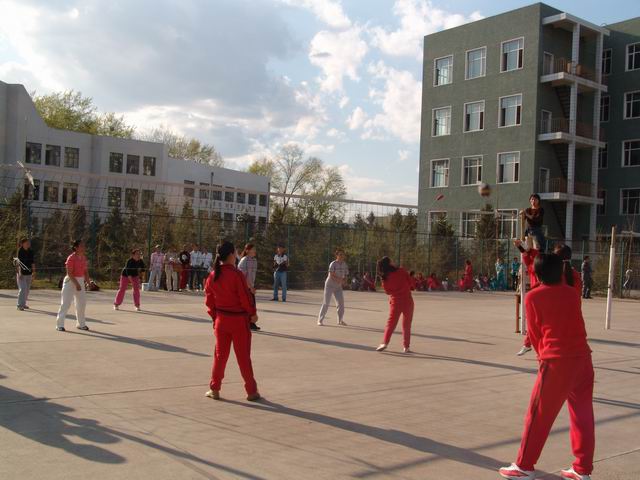 5月12日,我校2005年教工春季排球比赛分别在东、中、西区排球场地开赛。此次比赛由校工会主办,各基层工会组成男、女队分别参赛。