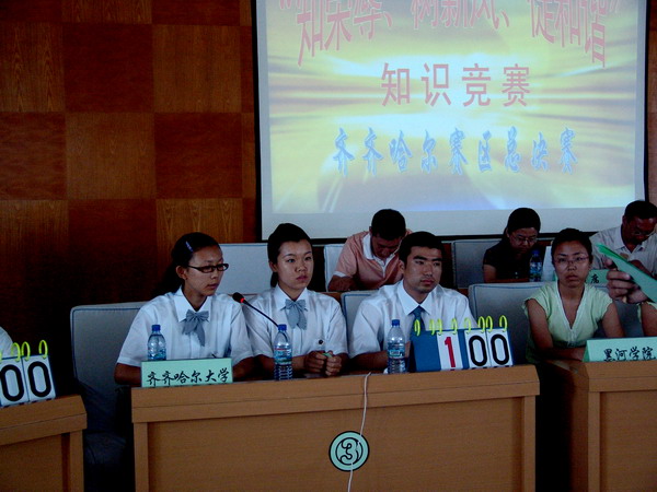 经过紧张激烈的比赛,齐齐哈尔职业学院代表队获得了“知荣辱、树新风、促和谐’知识竞赛齐齐哈尔赛区决赛”第一名,将作为齐齐哈尔赛区代表队参加全省决赛;我校代表队获得了第二名。