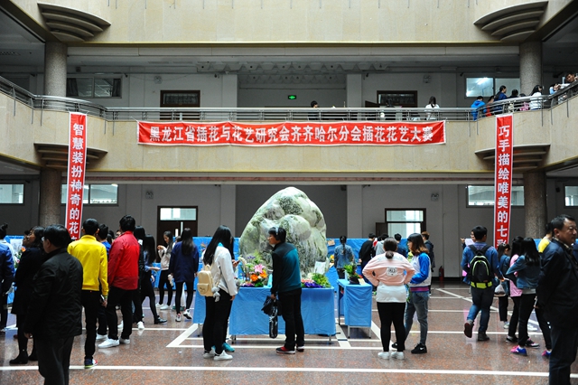 为进一步推进齐齐哈尔地区插花与花艺研究,促进本地区各相关院校、企事业单位相关人员经验与技术交流,黑龙江省插花花艺研究会齐齐哈尔分会于2016年5月11日在我校西主阳光大厅成功举办了“第六届插花花艺大赛”。