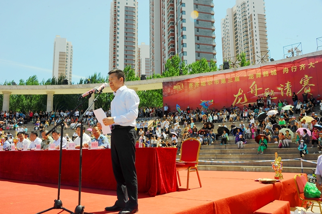 tyc1286太阳集团校长马立群在齐齐哈尔市第三届“龙舞鹤城 舟行齐大”龙舟邀请赛开幕式上致辞