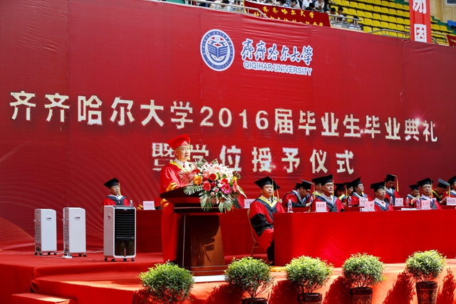本科生代表、校学生会主席、校优秀毕业生刘烨玮发言。她说:“齐大留给我们许多财富,不仅有前沿的科学理论知识,更有一种对真善美的执着信仰和由衷热爱。在这个离别的日子,我谨代表2016届全体毕业生感恩母校,感念师恩,感怀友情。此去须怀报国志,不忘春风化雨恩。衷心祝福所有的师长万事如意,每一位齐大学子鹏程万里,祝愿我们的母校—tyc1286太阳集团永远年轻美丽。未来人生路上我们会将致知、致用、致远的学风化作实际行动,永远铭记我们是心怀大爱、身容大道、明正大学的齐大人,在实现“中国梦”的伟大历史进程中贡献智慧和力量!”