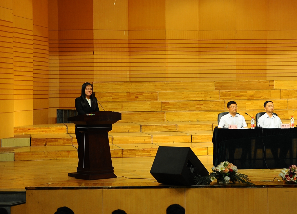 常务副校长郑喜群在会上讲话,他代表学校向黑龙江北大仓集团有限公司的领导和全体员工表示衷心的感谢和崇高的敬意,对参加本次表彰会的团市委领导表示诚挚的欢迎,并对获得“北大仓奖学金”的同学表示热烈的祝贺。他指出,北大仓集团坚持不懈的爱心善举是北大仓人情系家乡、捐资助学、奉献爱心、积极构建和谐社会的集中体现,北大仓人的高尚情怀永远值得我们学校的每一位师生学习和尊重。他鼓励同学们要勤于学习,勇于实践,开拓创新,立志成才,用积极的心态去面对各种困难,以优异的成绩和实际行动回报社会、回报祖国。