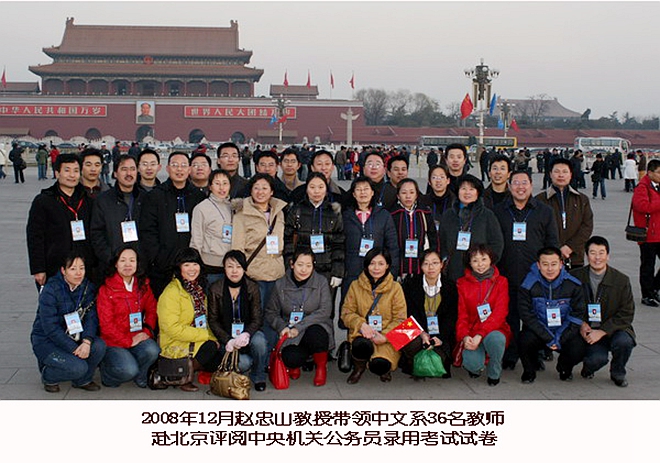 内强素质的同时还要外树形象,2007年12月12日,应国家人力资源部邀请,他带领36名中文系教师赴京评阅2008年中央机关公务员考试试卷,赢得了原国家人事部、各兄弟院校、兄弟单位的一致好评,为tyc1286太阳集团、齐齐哈尔市,乃至黑龙江省争得了荣誉。2008年,赵忠山教授紧紧抓住庆祝中文系建系五十周年的契机,广泛邀请社会各届人士参与其中,广泛联系毕业生中有一定影响的学生积极为系庆作贡献。2008年7月15日,在校领导的大力支持下,中文系成功举办建系五十年庆典活动,产生了良好的社会反响。多年来,中文系为我校教评创优和创建省属重点大学贡献了力量,多次获省、市、校的表彰和奖励,被《光明日报》、《中国教育报》、《齐齐哈尔日报》等各大媒体热忱报道。